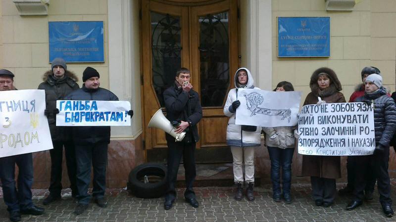 Акція протесту розпочалась сьогодні вранці. Близько 30 активістів комітету Євромайдану Львівщини прийшли під стіни Львівської митниці Міндоходів із шиною та імпровізованим "коктейлем молотова". Вони тримали плакати з написами: "Митниця -- українська?", "Ганьба бюрократам!" і "Дякуємо полякам!".